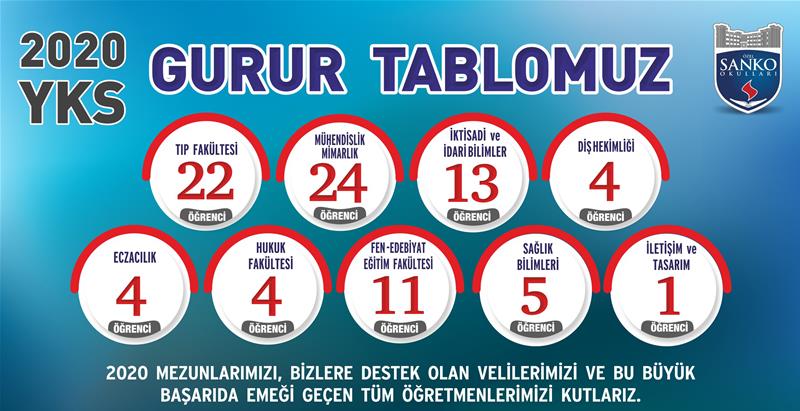 SANKO Koleji ve SANKO Fen - Teknoloji Lisesi 2020 Mezunları YKS yerleştirme sonuçlarının açıklanmasıyla başarılarını taçlandırdılar. SANKO Liseleri 2020 mezunu 22 &ou..